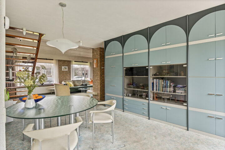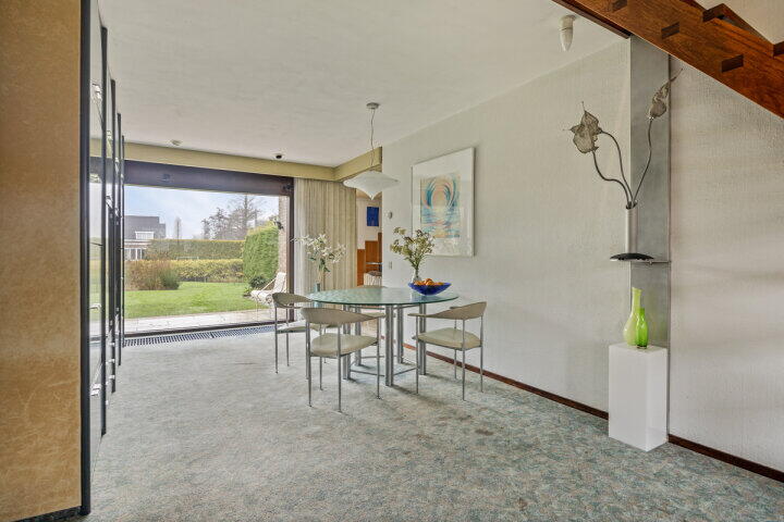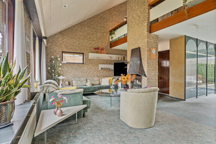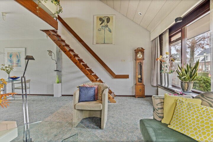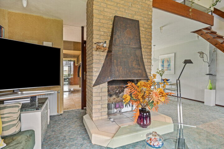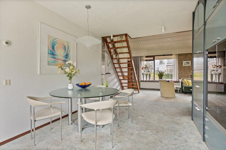 Het hart van de woning is de royale, lichte woonkamer. Hier zorgen grote raampartijen voor een overvloed aan natuurlijk licht, terwijl de sfeervolle haard een warme uitstraling biedt. De open indeling maakt het mogelijk om uw zithoek flexibel in te richten. De eetkamer, grenzend aan de woonkamer, biedt een prachtig uitzicht op de achtertuin. Of u nu geniet van een diner of een ontspannen middag, deze ruimte straalt rust en gezelligheid uit.