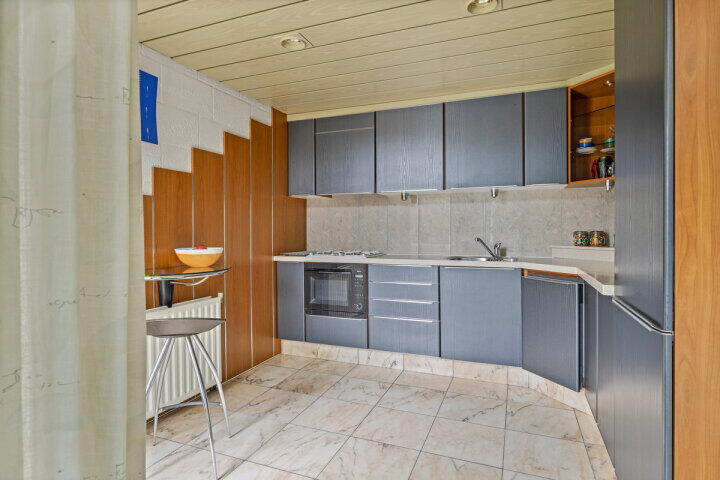 Grenzend aan de eetkamer vindt u de praktische en moderne keuken. Met een l-vormig aanrechtblad en diverse inbouwapparatuur is koken hier een waar genot. Een gasfornuis met afzuigkap, ingebouwde oven, vaatwasser en koelkast maken deze keuken compleet. Bovendien biedt de keuken volop opbergruimte en heeft u directe toegang tot de garage.
