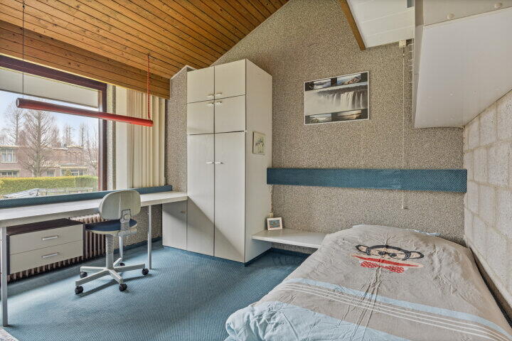 Drie slaapkamers bevinden zich op deze verdieping, elk met hun eigen karakter. Eén slaapkamer beschikt over een handige ingebouwde kast, terwijl een andere grenst aan een balkon voor een heerlijke buitenervaring. De derde slaapkamer biedt extra speelsheid dankzij de trap naar een eigen vide. Deze kamers zijn ruim en multifunctioneel, perfect voor een gezin of als hobby- of werkkamer.