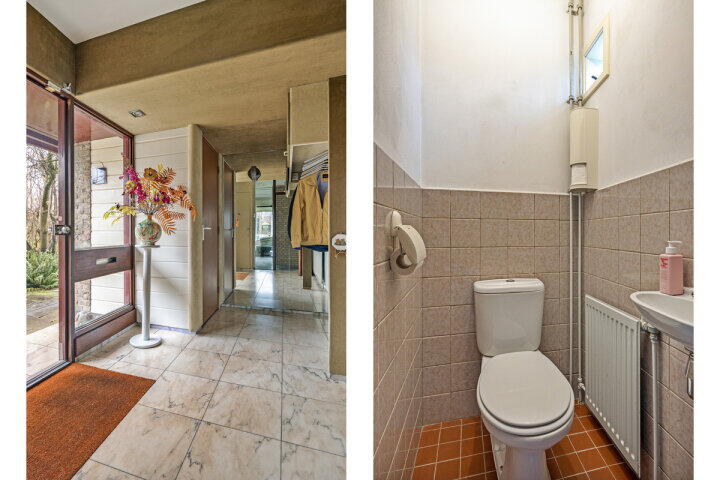 De woning beschikt over 2 opritten (1 oprit tot aan de garage, de ander tot aan de entree van de woning). Via de voordeur betreedt u de ruime ontvangsthal, waar licht en ruimte u verwelkomen. Deze hal, voorzien van een nette toiletruimte, biedt een praktische doorgang naar de woonkamer. Een stijlvolle entree die het karakter van deze woning direct laat zien.